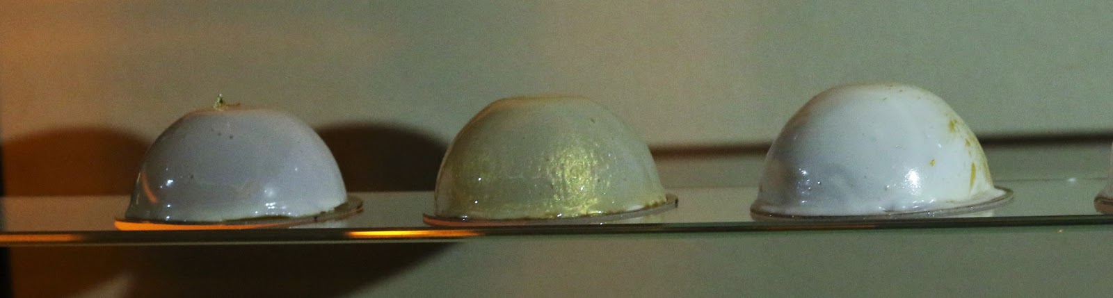 La veille, chauffez les 2 pulpes et le sucre puis ajoutez la gélatine à la fin. Versez le mélange dans une boite et conservez au froid jusqu’au lendemain. Le lendemain, taillez la brunoise de mangue et gardez-la dans un bol au froid. Mettre la gelée faite la veille au batteur avec le fouet à tourner en vitesse rapide pendant 20 min. Assurez-vous que le mélange soit bien homogène et ajoutez la brunoise de mangue à la Maryse. Moulez la gelée émulsionnée dans un dôme de diamètre 5 centimètres.